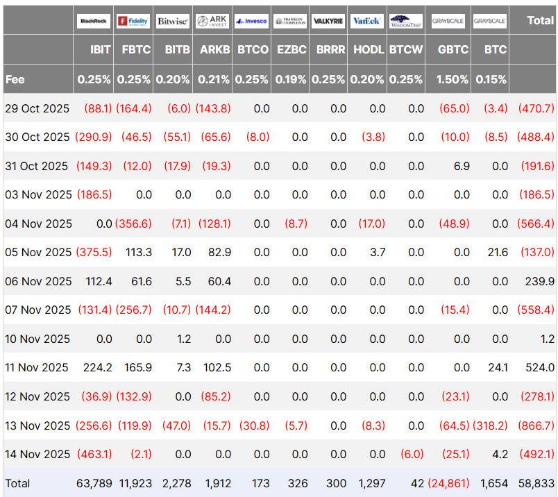 Чистый отток средств из биткоин-ETF составил $1,1 млрд за прошлую торговую неделю, показав четвертый крупнейший недельный показатель оттока за всю историю наблюдений по данным Farside Investors.