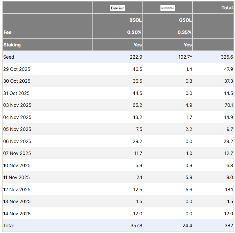 Биржевые фонды Solana (SOL) продолжают показывать положительную динамику несмотря на общее падение криптовалютного рынка.