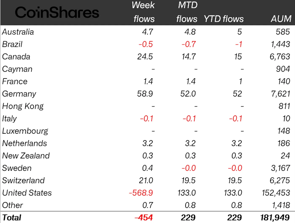 Географически только США продемонстрировали негативное настроение: отток достиг $569 млн.