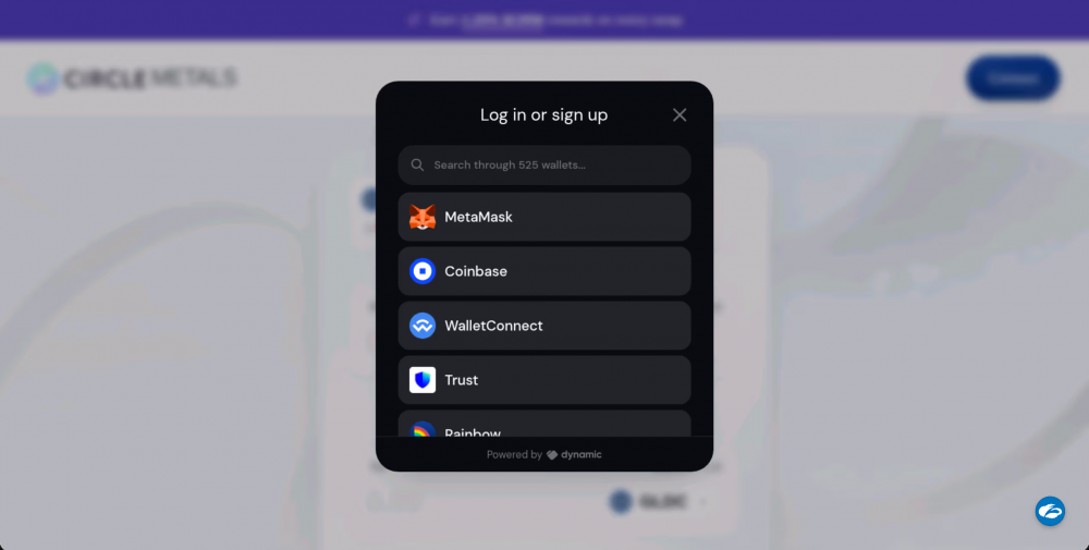 Скриншот всплывающего окна подключения кошелька CircleMetals. Источник: Francisco Rodrigues/CoinDesk.
