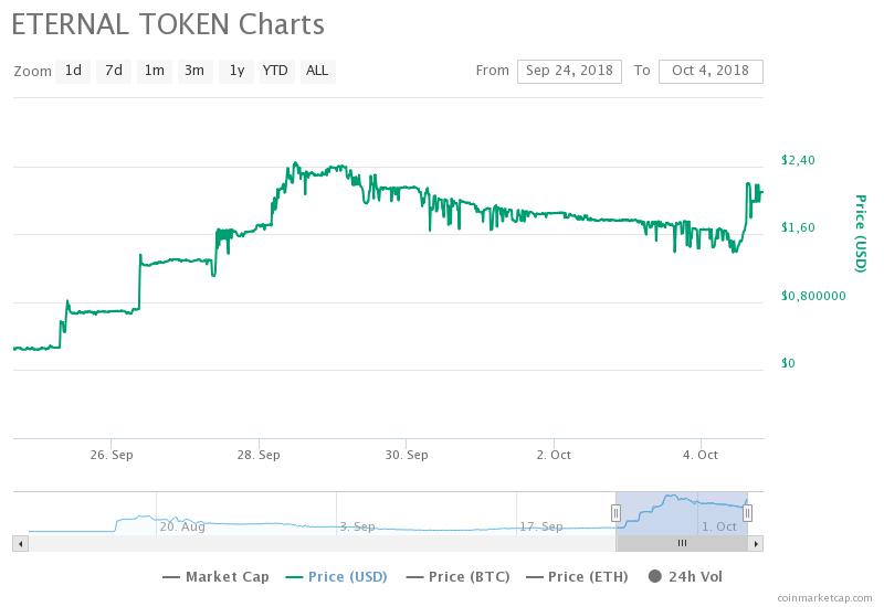 За последние семь дней криптовалюта XET прибавила в цене более 900% и увеличила капитализацию с 12 млн долларов до более чем 140. Специалисты рассказали, почему дорожает Eternal Token.