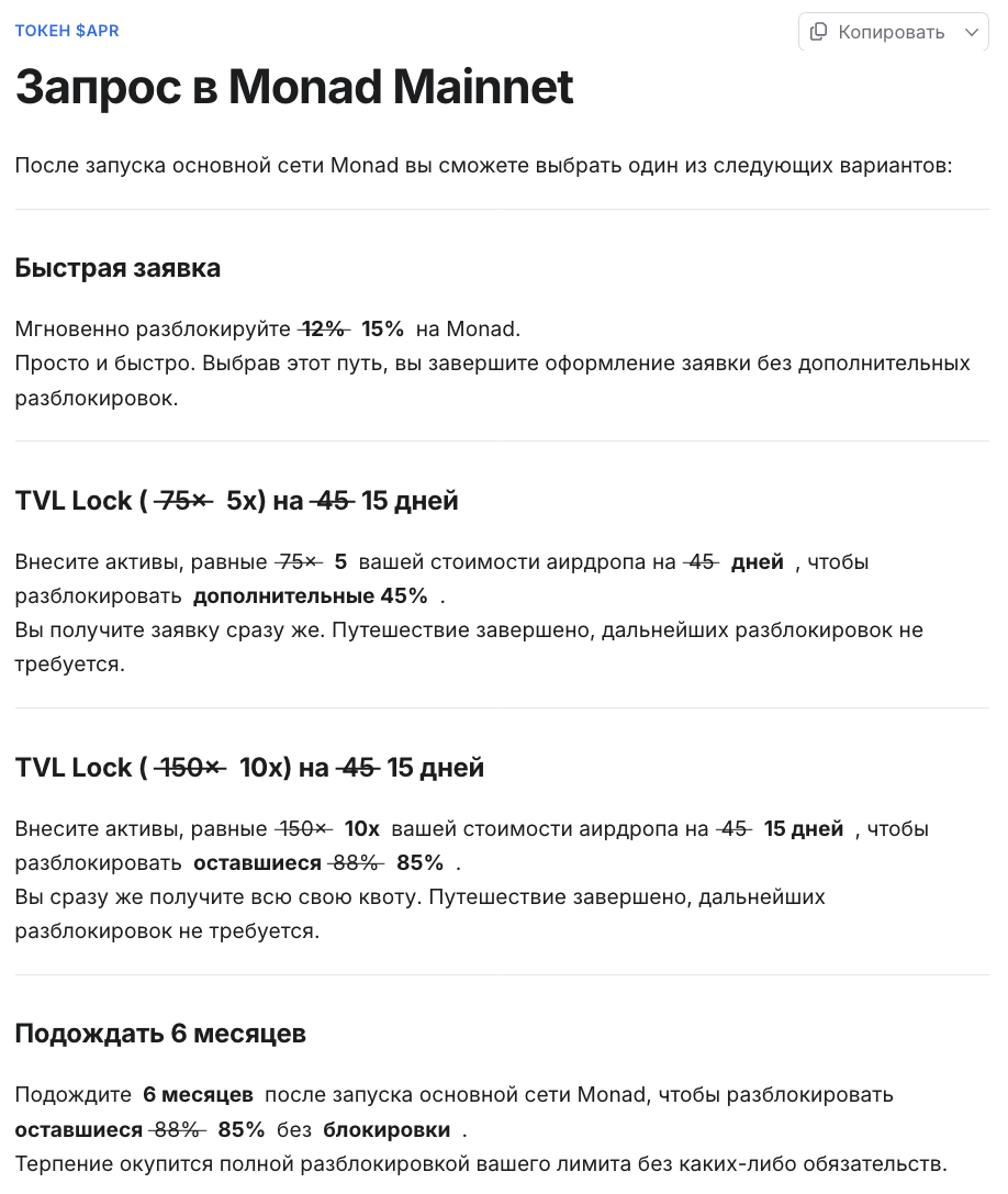 Получение токенов APR в сети Monad Mainnet. Источник: apriori-docs.gitbook.io