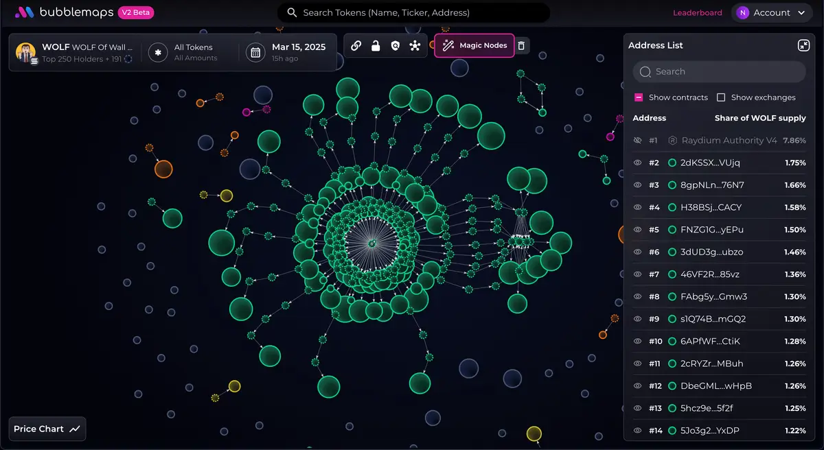 Последние выводы были сделаны с помощью функции Time Travel от Bubblemaps — аналитического инструмента уровня криминалистической экспертизы, запущенного в мае. Он позволяет пользователям Web3 восстанавливать историческую картину распределения токенов, чтобы выявлять раннюю инсайдерскую активность или скоординированные накопления. Это помогает предотвращать схемы типа rug pull (когда инсайдеры изымают ликвидность или устраивают массовую распродажу, вызывая резкое падение цены) и мошенничество с мемкоинами.