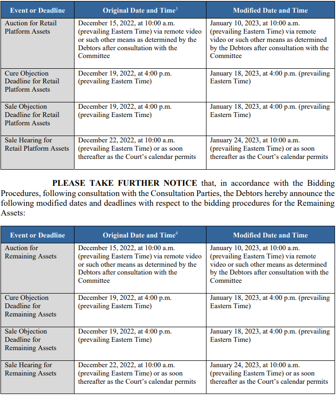 Измененные даты проведения торгов в соответствии с исковым заявлением суда Celsius от 15 декабря. Источник: Stretto.