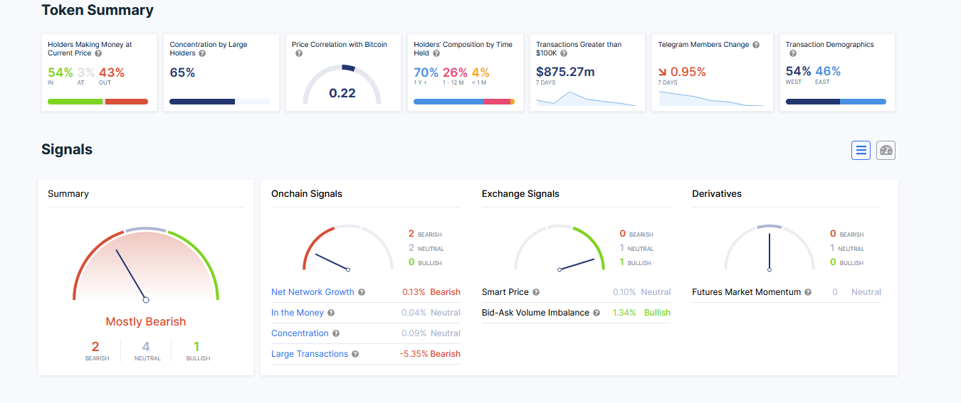 По данным ITB, токен упал на 76,1% за последние 12 месяцев, при этом только 14% ходлеров в плюсе, 4% находятся в зоне безубыточности и 82% в минусе.