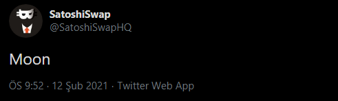 Первым твитом SatoshiStreetBets, который создал аккаунт в Твиттере с объявлением SAS 12 февраля, был «Луна» .