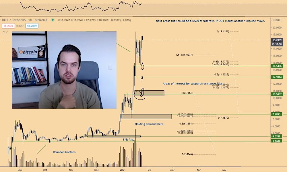 Криптоаналитик Майкл Ван де Поппе сказал, что эффективность альткойнов в следующем году «превзойдет воображение инвесторов». Он отметил, что уделяет пристальное внимание Polkadot (DOT) и ожидает, что следующий бычий рынок приведет DOT к ее целевым ценам в 25, 29 и 45 долларов.
