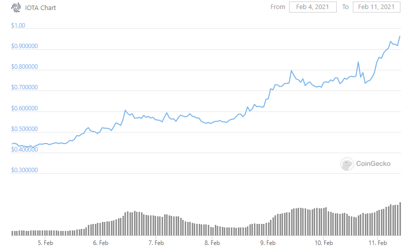 Цена MIOTA за неделю выросла до 1 доллара. Так какие факторы увеличивают цену токена?