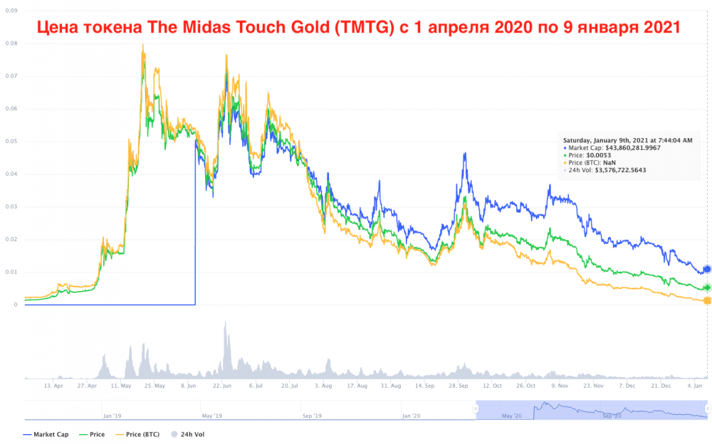 The Midas Touch Gold (TMTG) и Lux Bio Exchange Coin (LBXC) привлекают пользователей со всего мира недавним DeFi-проектом TOM Finance, который, по словам разработчиков из компании TMTG, показал доходность в 1400%. Но это справедливо только для вервой половины 2020 года и, по всей видимости, столь значительный рост связан с листингами на крупных биржах в апреле-мае 2020. Затем стоимость токенов TMTG и LBXC неумолимо снижалась и за вторую половину 2020 года они обесценились более, чем в 10 раз и продолжают падать в цене.