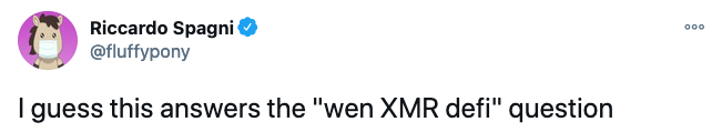 «Я думаю, это ответ на вопрос «Когда XMR DeFi», - написал под ретвитом ведущий разработчик Monero Риккардо Спаньи.