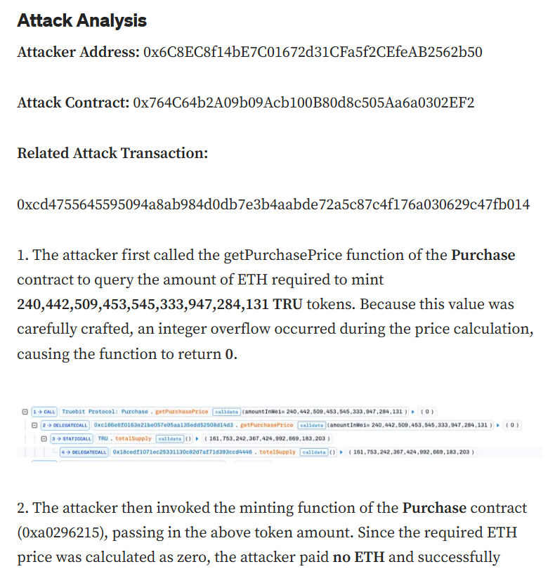 Постмортем‑анализ взлома Truebit. Источник: SlowMist