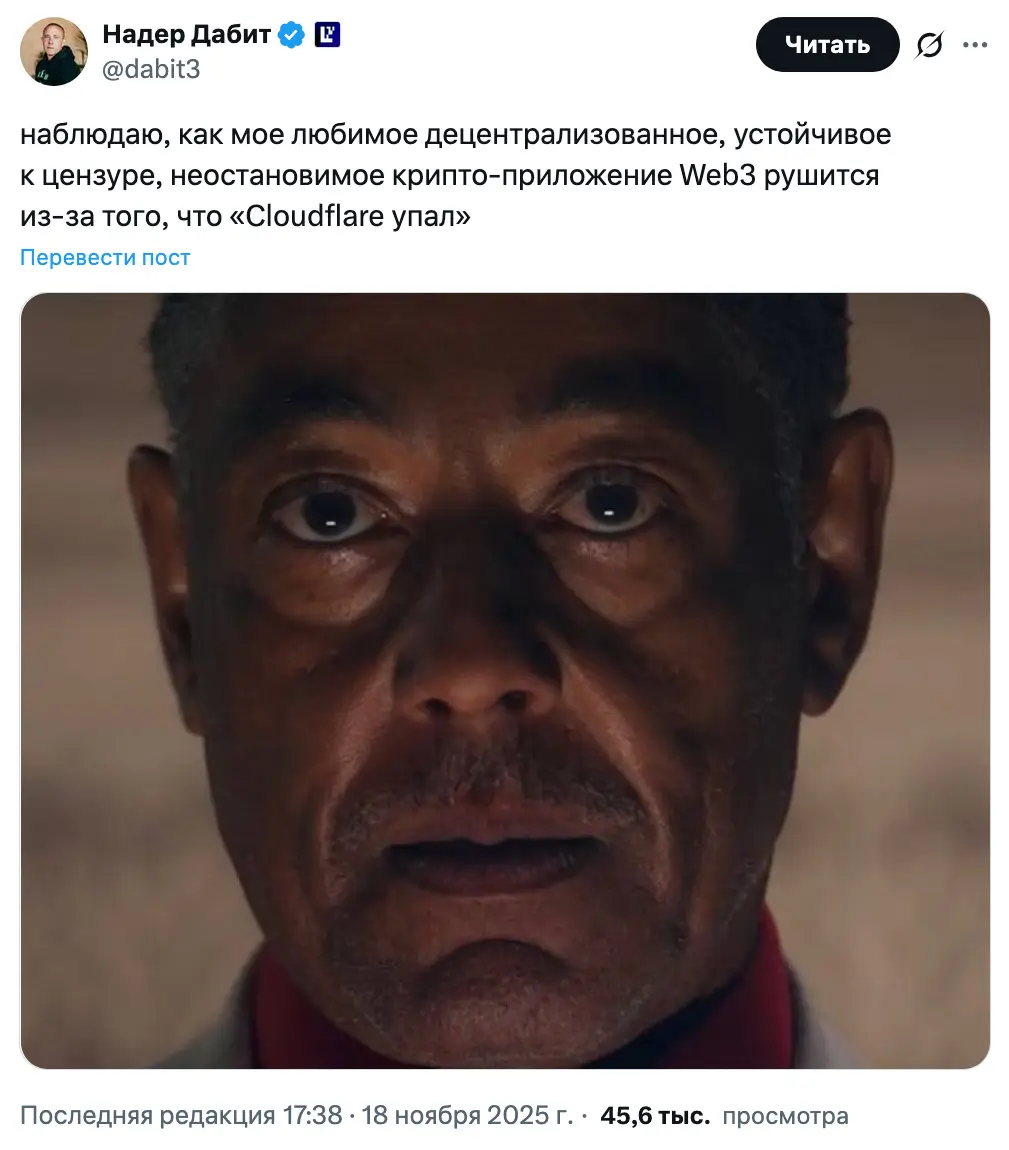 Сбой затронул веб-сайты Coinbase, Blockchain.com, Ledger, BitMEX, Toncoin, Arbiscan и DefiLlama, а также X и ChatGPT. Это побудило некоторых комментаторов отметить зависимость криптоиндустрии от централизованных систем, часть которых также переставала работать во время сетевого сбоя Amazon Web Services в прошлом месяце.