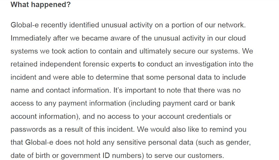 «Также хотим напомнить, что Global‑e не хранит чувствительные персональные данные — такие как пол, дата рождения или номера удостоверений личности — для обслуживания наших клиентов», — добавили в компании.