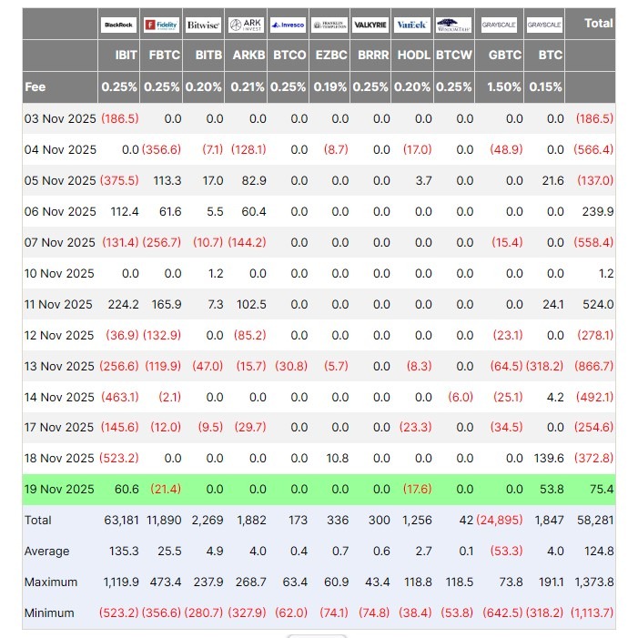 Биржевые фонды (ETF) Bitcoin, котирующиеся на бирже США, в среду прервали 5-дневный отток средств, зафиксировав чистый приток в размере 75 400 000 долларов США, поскольку биткоин отыграл отметку в 92 000 долларов США.