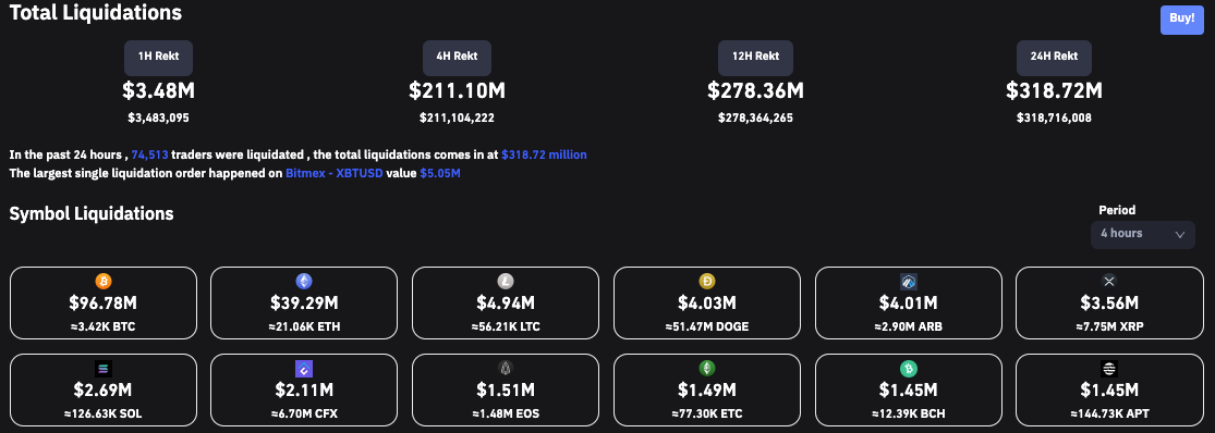 Независимо от того, что вызвало внезапный крах, резкое падение цен нанесло ущерб рынку деривативов, при этом общая сумма ликвидаций для участников крипторынка в настоящее время превышает 211 миллионов долларов. На долю биткойн-трейдеров приходится почти 97 миллионов долларов этих ликвидаций.