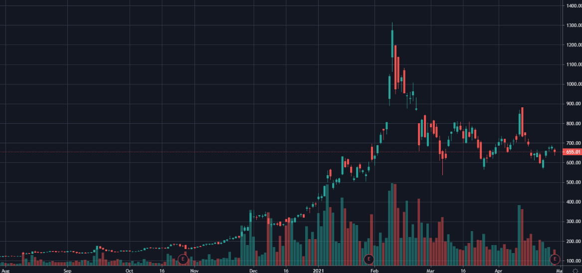 MSTR/USD с августа 2020 г по данным TradingView