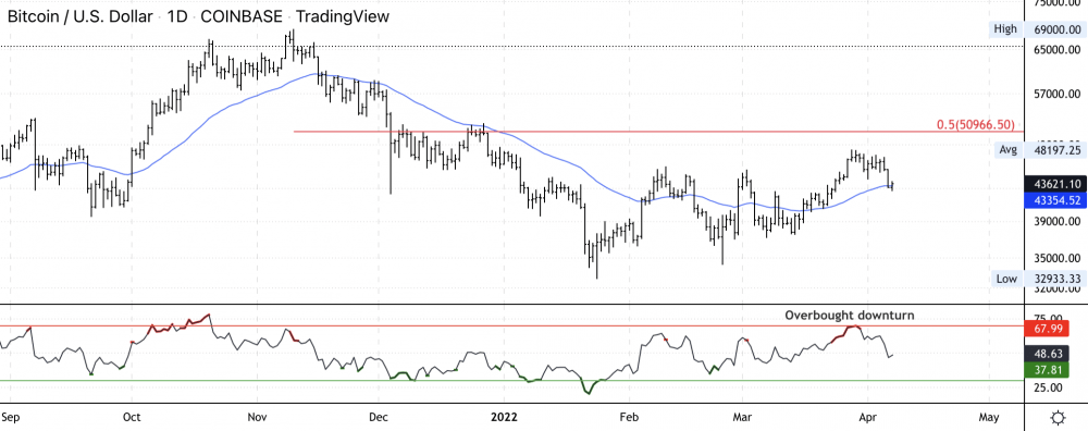 Биткоин стабилизируется после падения почти на 10% по сравнению с уровнем сопротивления в 48 000 долларов в начале этой недели. Криптовалюта находится на уровне 43 000 долларов и не изменилась за последние 24 часа.