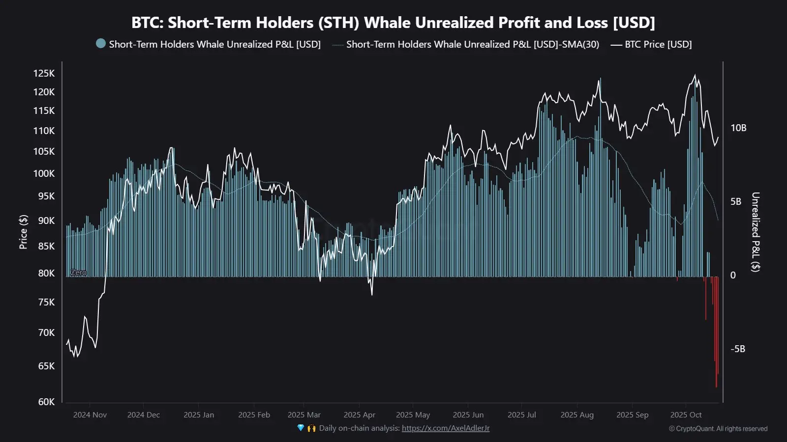 Нереализованная прибыль и убыток краткосрочных держателей BTC в USD. Источник: CryptoQuant