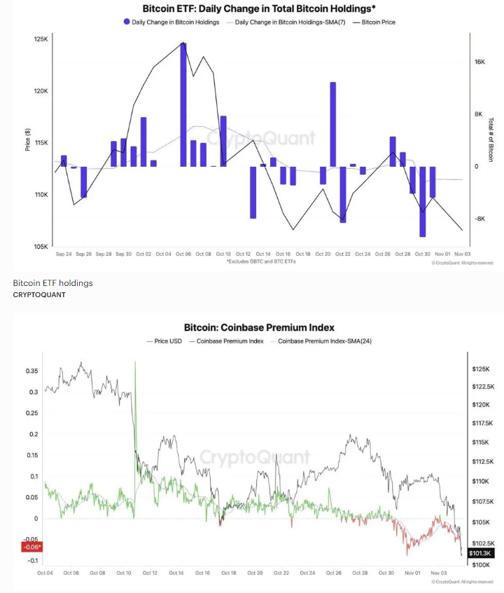 Он также обратил внимание на изменения в крупнейшей экономике мира, отметив, что «в США инвесторы также снизили спрос на биткоин, о чём свидетельствуют отрицательные потоки ETF и отрицательная ценовая премия Coinbase».