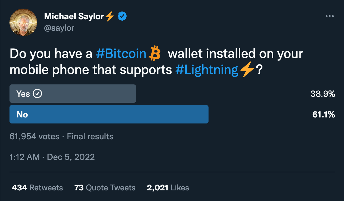 Майкл Сейлор, исполнительный председатель Microstrategy, опросил в Твиттере более 60 000 человек, использовали ли они Lightning Network. Результаты этого опроса вдохновили Shire.