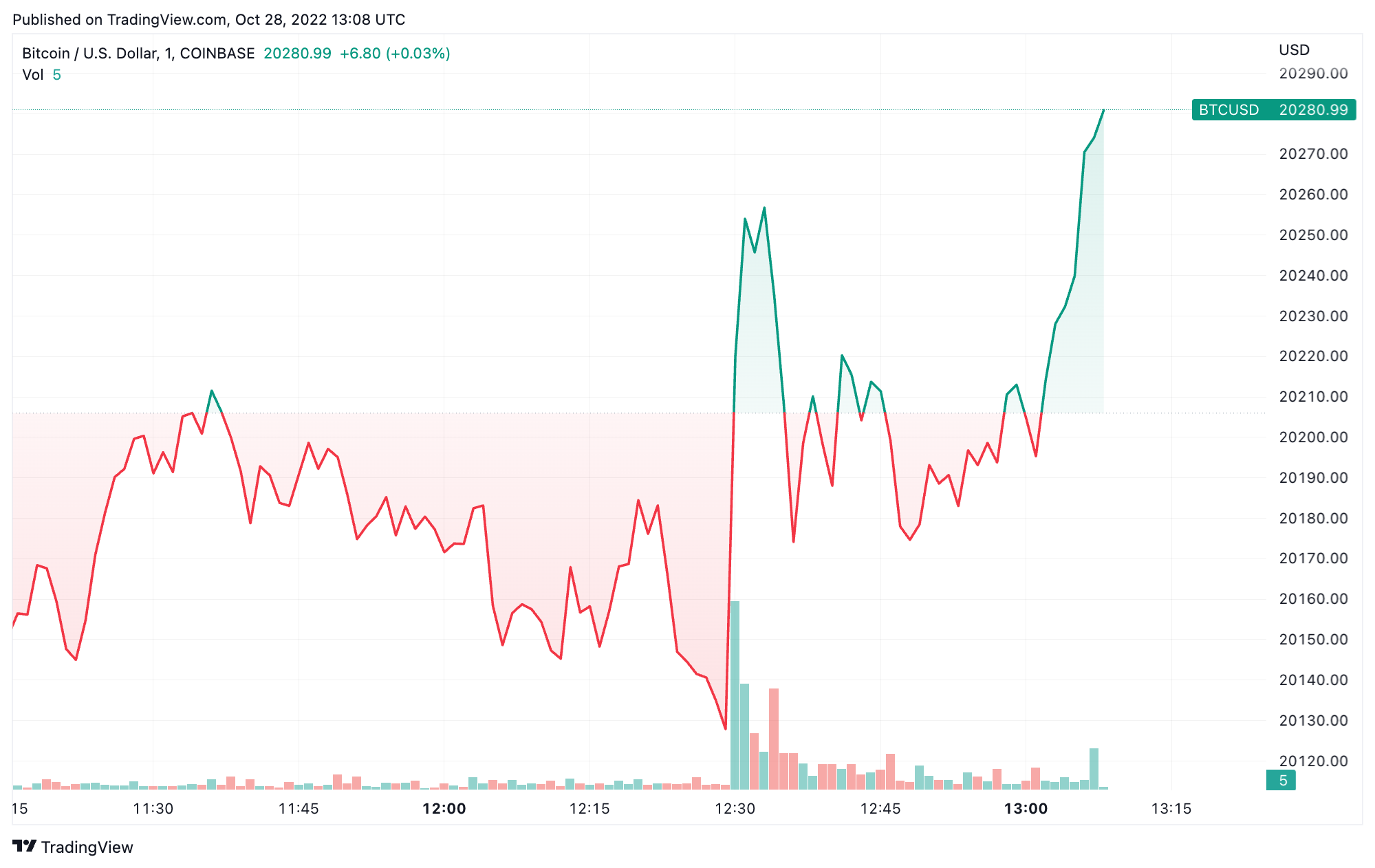 Биткойн торговался на уровне 20 280 долларов после выпуска. Ведущая по рыночной капитализации криптовалюта ненадолго выросла, прежде чем торговаться ниже, а затем снова выросла. Экономические показатели повлияли на цены на криптовалюту за последние несколько месяцев.
