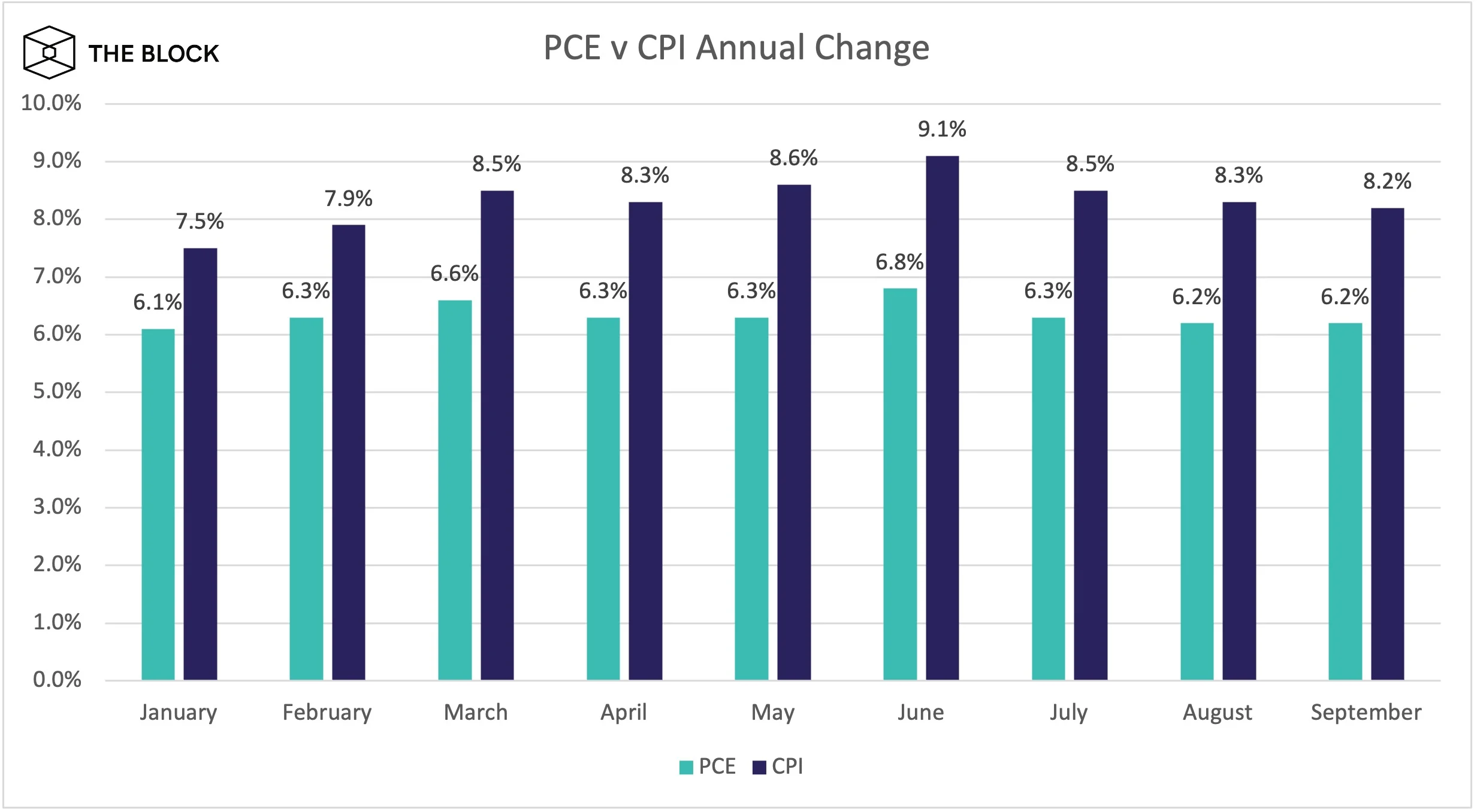 Он считается предпочтительным показателем инфляции ФРС, поскольку он может отражать изменения в поведении потребителей и, таким образом, дает более полное представление о картине инфляции, чем индекс потребительских цен (CPI). Индекс потребительских цен в сентябре был выше, чем ожидалось, увеличившись на 0,4% в месячном исчислении и на 8,2% в годовом исчислении.