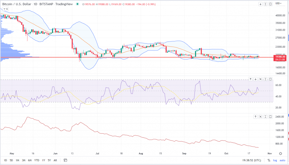 BTC продемонстрировал гораздо меньшую волатильность, чем S&P 500 (SPX) и Nasdaq Composite, чьи ATR для сравнения увеличились на 64% и 19% с начала года соответственно. BTC также, похоже, торгуется прямо в области поддержки, которая будет варьироваться в зависимости от вашего метода расчета. Визуально поддержка BTC, похоже, составила около 18 900 долларов. Глядя на ценовые точки и учитывая объем этих цен, это означает немного более высокий уровень поддержки на уровне около 19 300 долларов США.