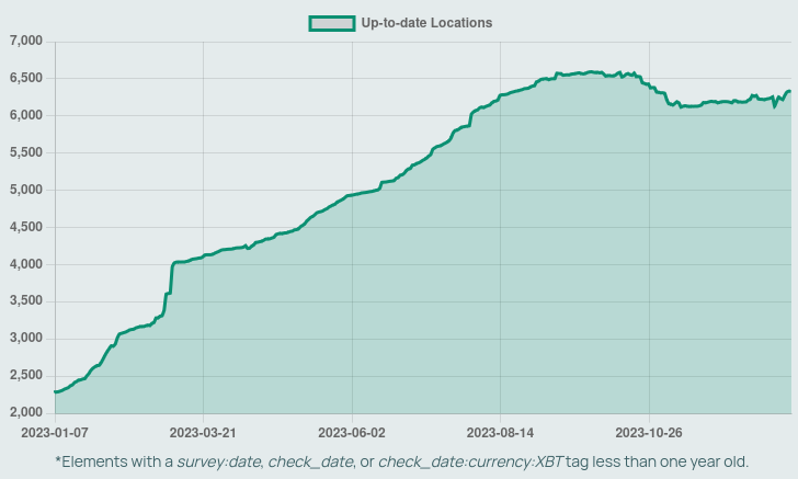 Согласно последним данным BTC Map, количество ресторанов, баров, магазинов и услуг, принимающих цифровой актив, к концу 2023 года достигло 6126 по сравнению с 2207 торговцами в начале года.