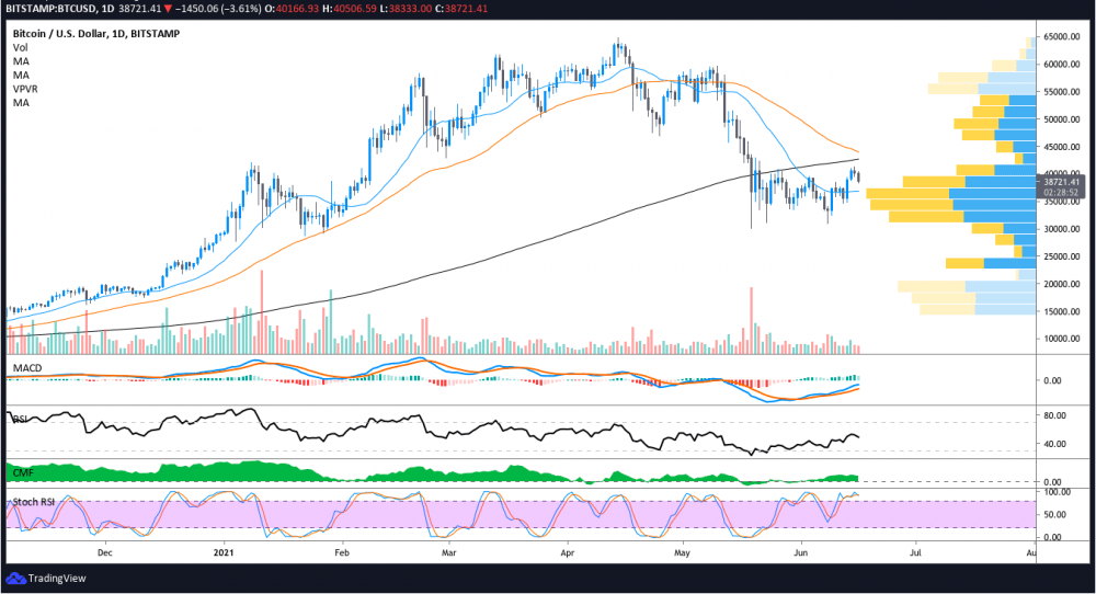 15 июня цена биткоина успешно завершила свою бычью обратную модель, но не достигла цели в 45 500 долларов после достижения сопротивления на уровне 41 350 долларов. В то время как цена упала ниже 40 000 долларов США и не смогла перевернуть уровень поддержки, аналитики рассматривают текущее ценовое действие как не что иное, как торговлю с диапазоном, и на момент написания статьи 38 300 долларов выглядят как более низкий повторный тест поддержки.