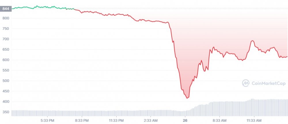 Токен Wonderland TIME упал до рекордно низкого уровня в среду, опустившись на 40% за 24 часа до чуть менее 420 долларов в азиатских часах.