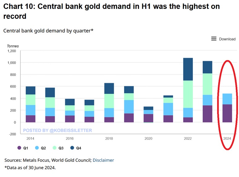 Спрос на золото со стороны центральных банков в первой половине 2024 года. Источник: Kobeissi Letter