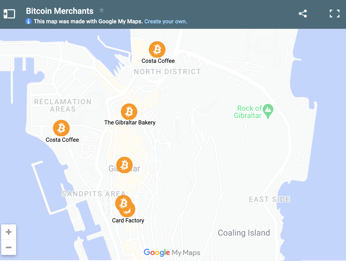 В то время как остров Мэн превратился в «Биткойн-остров», Уокер шутит, что Гибралтар можно назвать «Биткойн-скалой». Действительно, известные имена Costa Coffee и Hotel Chocolat присоединяются к растущему списку продавцов, которые принимают биткойны на Гибралтаре. Essardas Luxury, например, принимает биткойны с начала 2021 года, в то время как небольшие независимые магазины принимают биткойны, а иногда и другие криптовалюты, включая стейблкоины, по запросу.