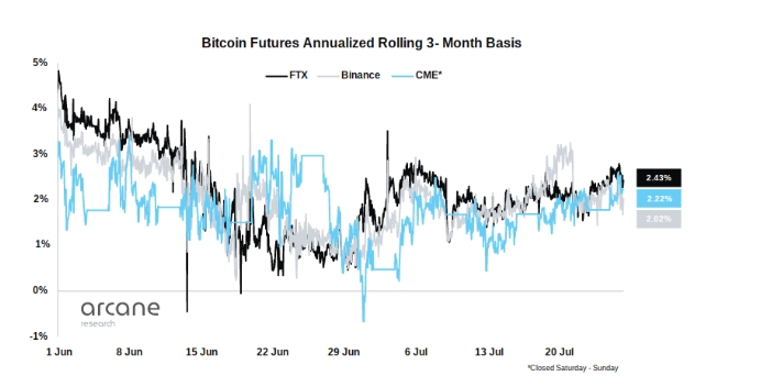 «Тем не менее, ставки финансирования значительно выше, чем в течение большей части июня, когда эффект заражения опустошил рынок», — продолжил Arcane.