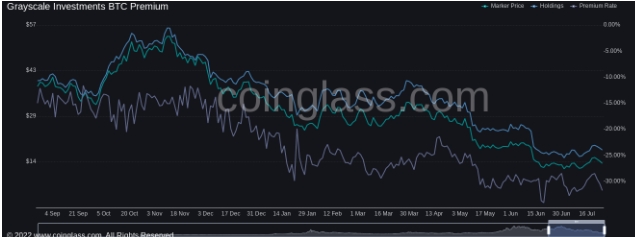 По состоянию на 27 июля у гигантского биткоин-фонда по-прежнему была премия минус 30%, что свидетельствует о самых высоких скидках к спотовой цене биткойнов в истории.
