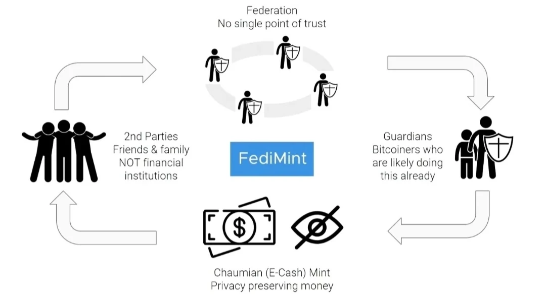 Fedimint применяет поддерживаемый сообществом подход к финансированию, но использует децентрализованную неизменную валюту, то есть биткойн.
