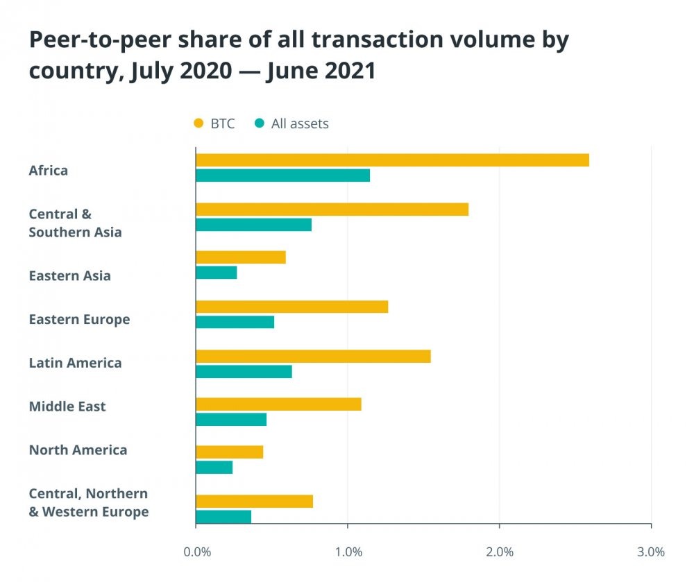 Объемы P2P транзакций на душу населения с июля 2020 по июнь 2021 гг.