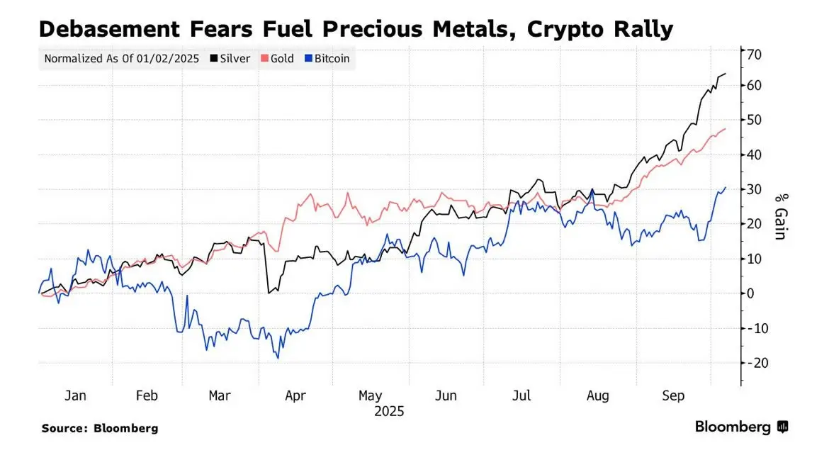 «Инвесторы, ожидающие постоянного размывания, ищут эталон, который не изменится, и этот поиск проявляется как в золоте, так и в биткоине».