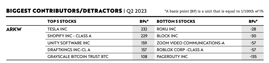Лучшие и худшие показатели ARKW во втором квартале 2023 года. Источник: ARK Invest.