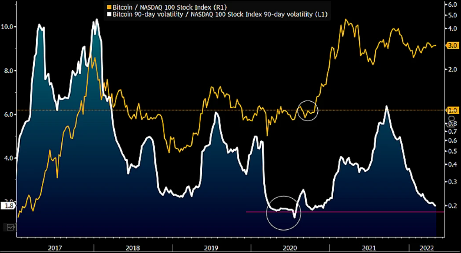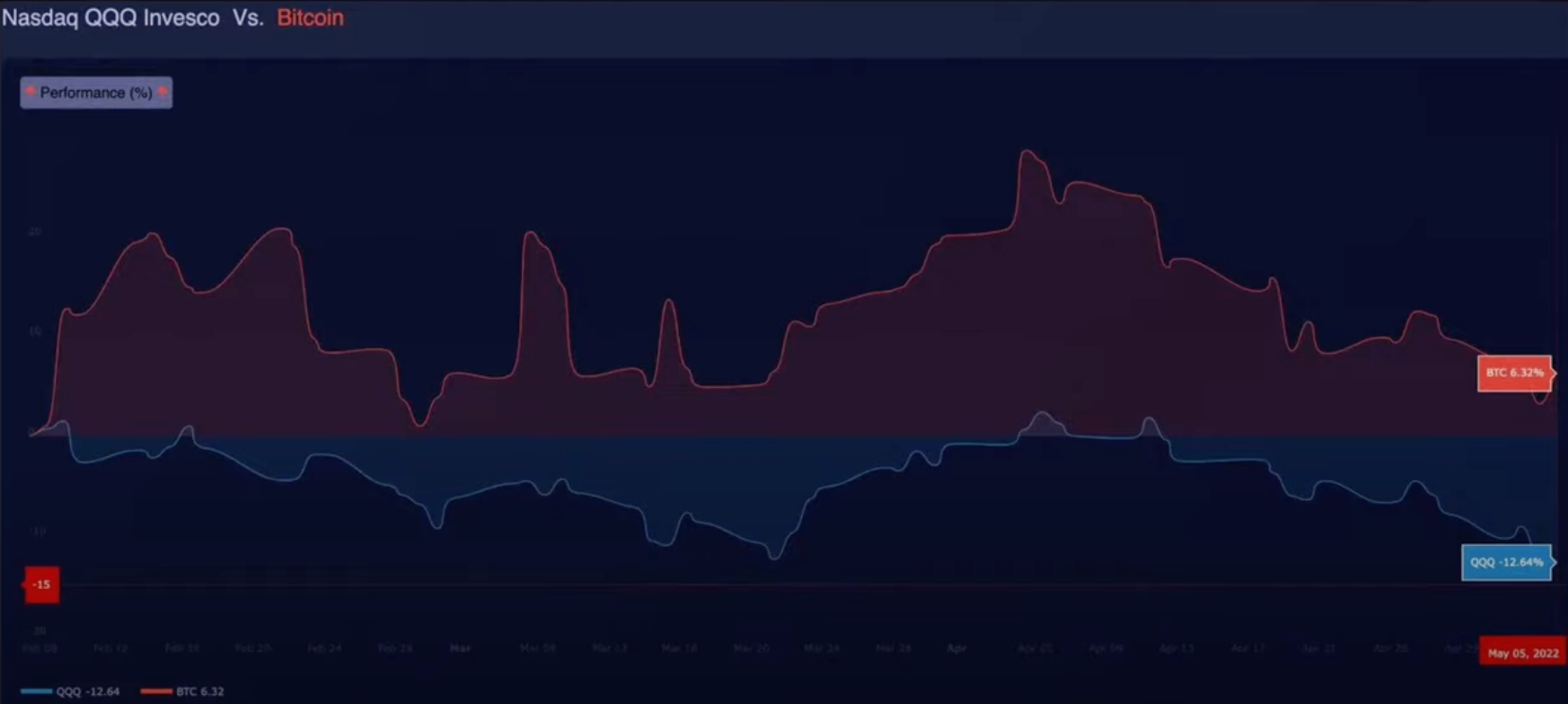 «Тот факт, что самый гибкий в мире торговый инструмент, работающий круглосуточно и без выходных, — биткойн — упал всего примерно на 15% в 2022 году по состоянию на 3 мая по сравнению с 20% для фондового индекса Nasdaq 100, может предвещать переход криптовалюты в статус безрискового актива».