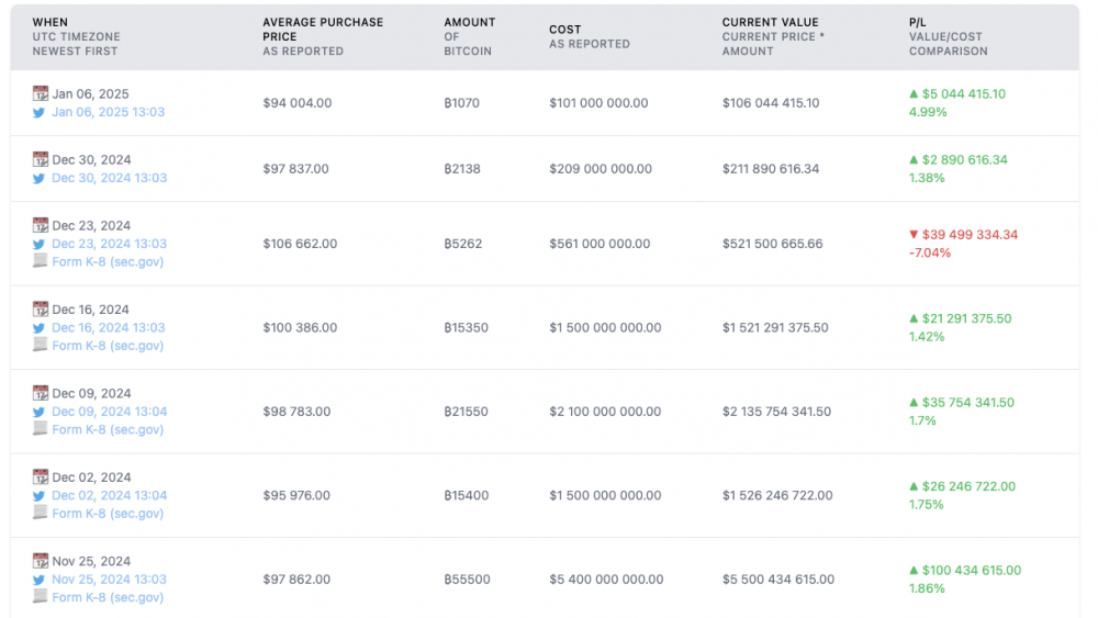 Компания объявила о покупке 6 января, заявив, что 30–31 декабря 2024 года она потратила около 101 миллиона долларов наличными.