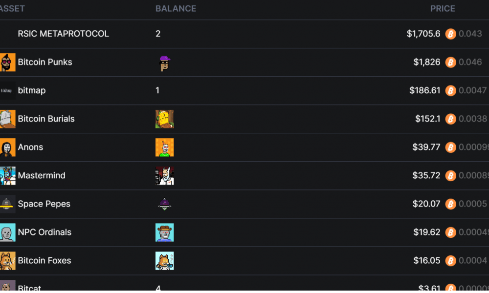 На адресе кошелька в настоящее время хранятся пожертвования на сумму 6 083 доллара США, а всего насчитывается более 16 000 записей. Эти надписи включают в себя две раздачи RSIC, одного Bitcoin Punk, один Bitcoin Burials, один Quadkey и несколько других. На учетной записи также хранятся тысячи надписей BRC-20. Однако на счету нет действительных/активных остатков BRC-20.