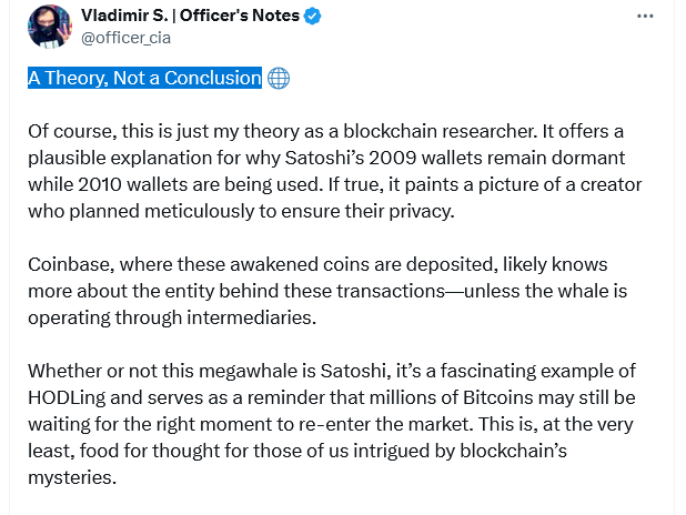 «Это наводит меня на мысль, что загадочный мегакит 2010 года на самом деле может быть Сатоши», — написал BTCparser в посте от 19 ноября. Тем не менее, это остается «теорией, а не выводом», — добавил BTCparser.