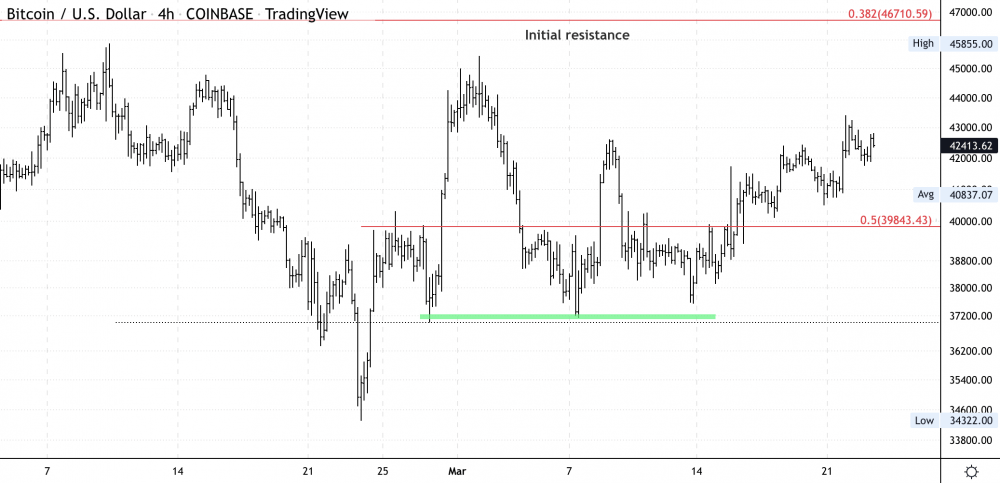 Возвраты биткоинов были ограничены в течение торгового дня в Азии, что говорит о том, что покупатели могут оставаться активными выше уровня поддержки в 40 000 долларов. Есть место для дополнительного роста, хотя сопротивление в 46 700 долларов может затормозить отскок цен.