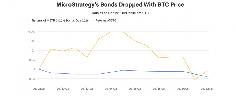 Цены на облигации стоимостью 500 миллионов долларов, которые закрылись 15 июня, упали почти на три пункта после того, как компания заявила в понедельник, что завершила покупку 13 005 биткоина по средней цене 37 617 долларов. На момент написания статьи биткоин торговался на уровне около 32 780 долларов США. Во вторник цены на облигации были указаны на уровне 97,75 по сравнению со 100,62 18 июня, согласно данным о ценах Trace.