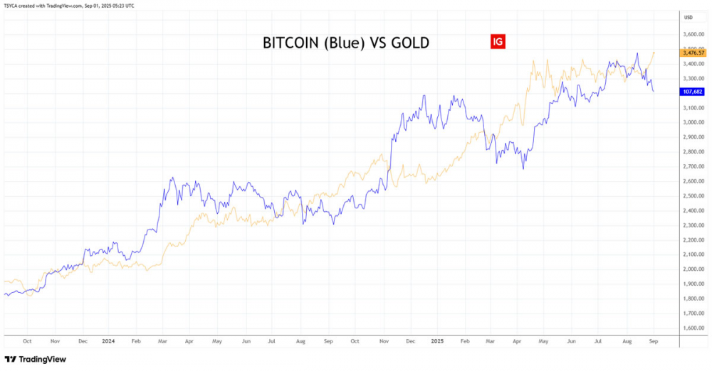 Аналитик IG Market Тони Сикамор говорит, что за последние два с половиной года наблюдается сильная корреляция между золотом, биткоином и Nasdaq, при этом все они стремительно растут.