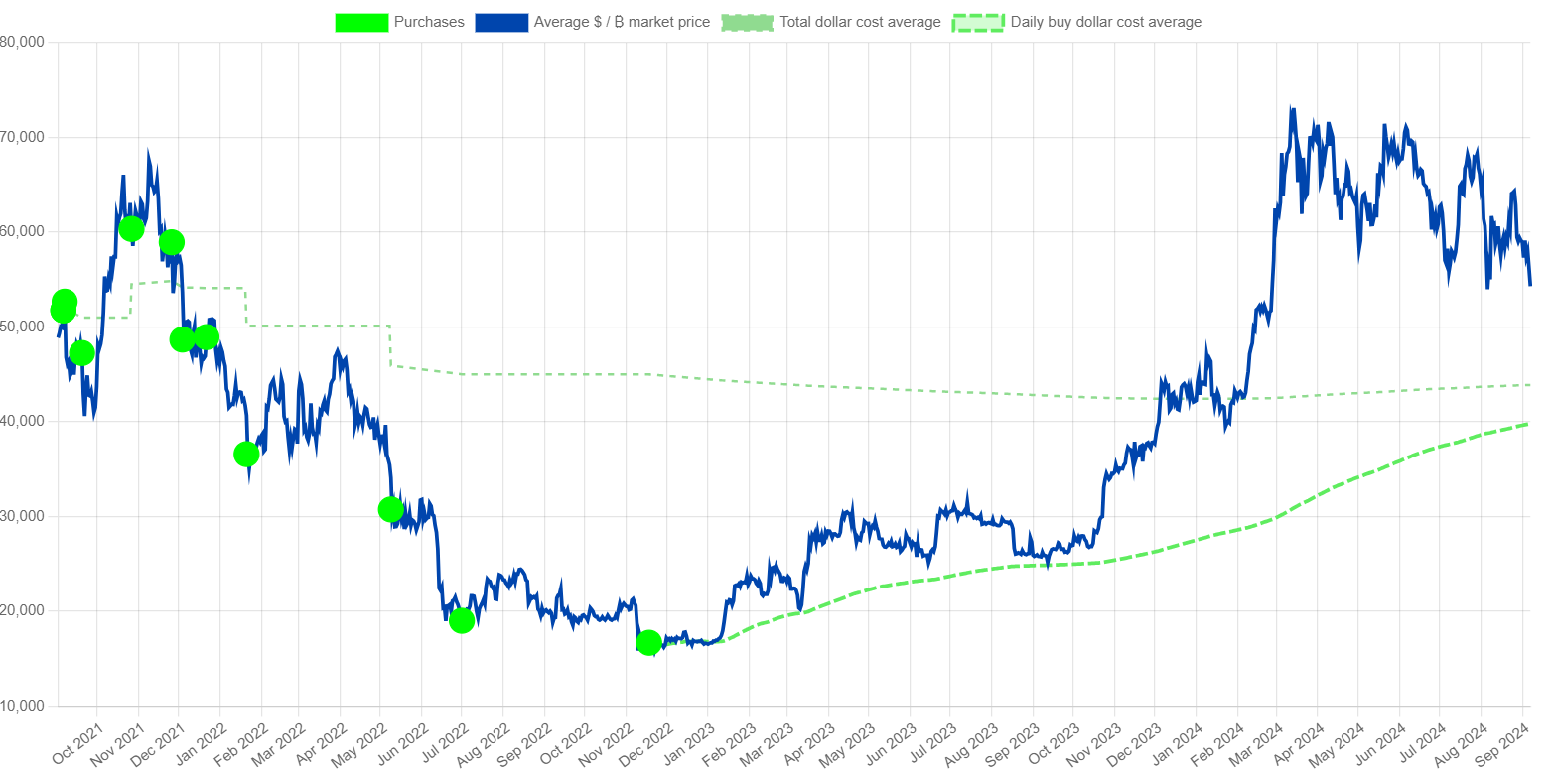 Сальвадор купил свои биткоин-активы по средней цене 43 877 долларов за BTC. Биткоин торговался по 54 300 долларов по состоянию на 10:55 утра по UTC 7 сентября.