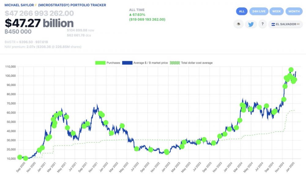 13 января компания приобрела 2530 BTC на сумму примерно в 243 млн долларов, доведя общие активы MicroStrategy до 450 000 BTC.