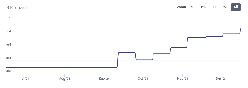 15 декабря сложность майнинга биткоинов — измерение, относящееся к уровню сложности поиска правильного хеша для каждого блока в блокчейне Биткоин — достигла нового исторического максимума, превысив 105 трлн, согласно данным CoinWarz.