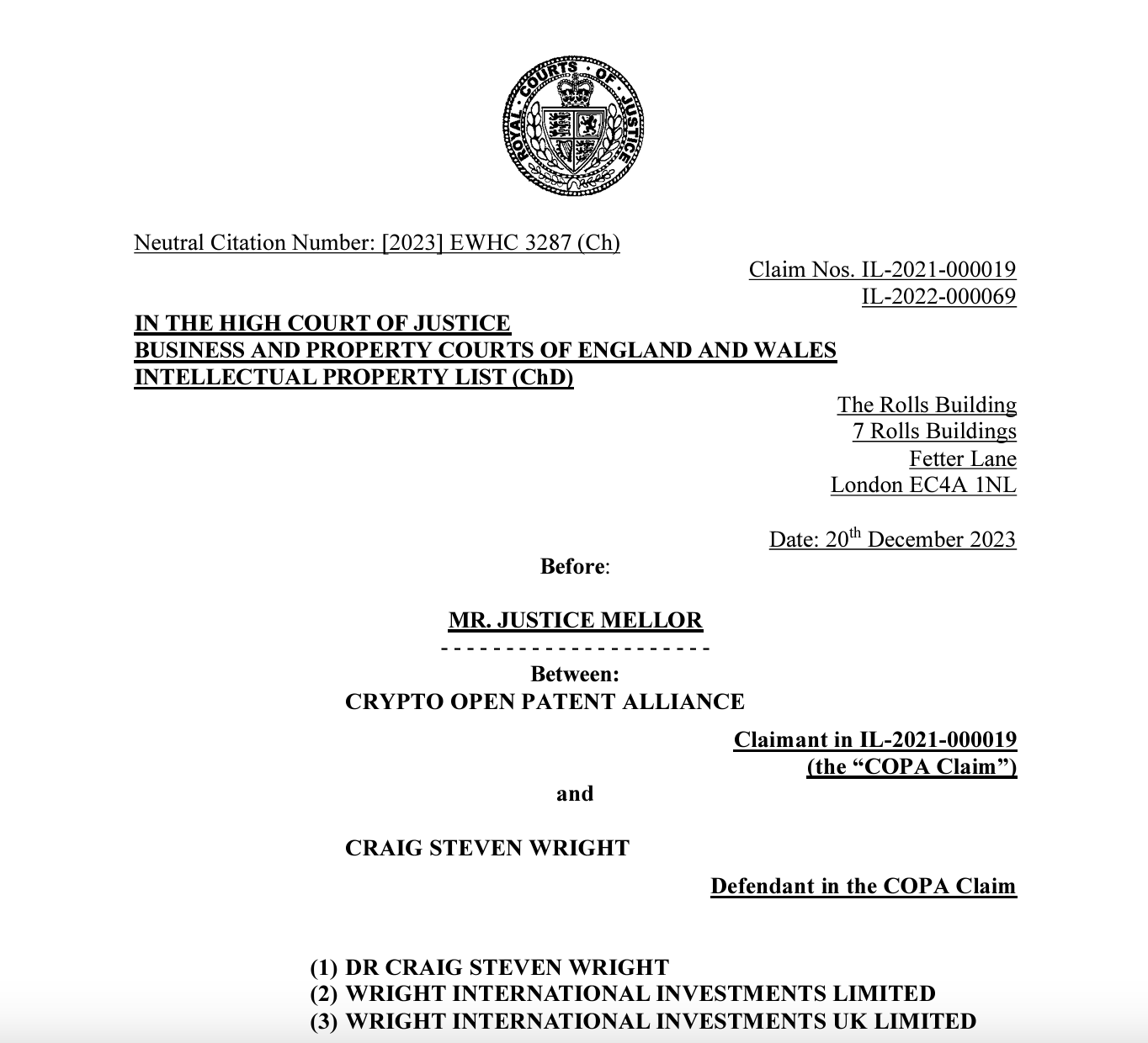 Последнее решение британского судьи Меллора по делу Райта против разработчиков Bitcoin Core. Источник: BLDF.