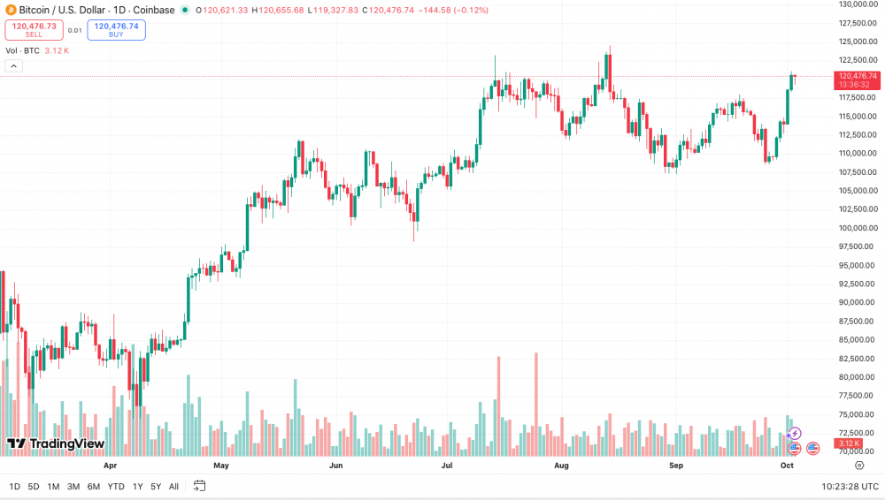 Uptober начался: биткоин достиг 7-недельного максимума в $120 000